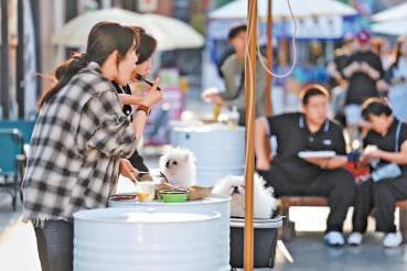 年轻人带着宠物打卡市集。记者 程功摄