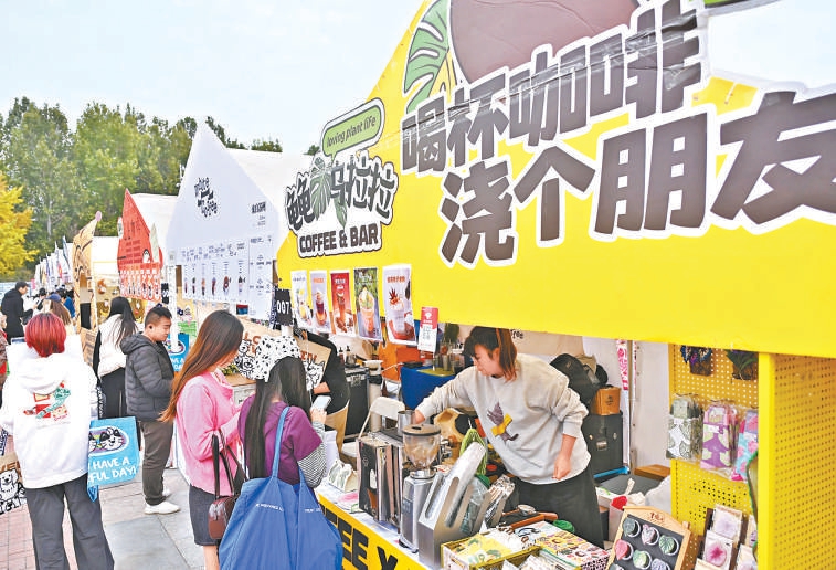 前不久,朝阳公园南门的礼花广场上,咖啡疗愈派对开张了,现场来了150余家独立咖啡及餐饮品牌,游客顶着寒风逛得不亦乐乎。“今天霜降,喝一杯西瓜奶糖特调,特有幸福感。”一位游客捧着咖啡听主理人孙落地介绍——所有咖啡豆都是店里自烘的,配有西瓜、水蜜桃等多种发酵风味。