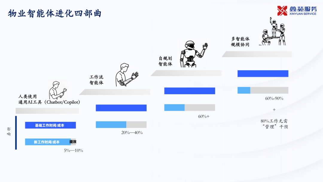 汤宇操系统性地描绘了物业智能体进化的四部曲,呈现出逐步智能化、自主化与协同化的发展路径。这不仅是技术能力的升级,更是人机协作关系的根本变革。
