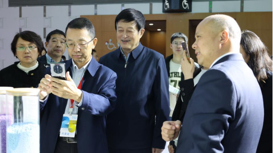 中国磷复肥工业协会理事长修学峰,中国工程院院士、中国农业大学国家农业绿色发展研究院院长张福锁参观新洋丰展台。