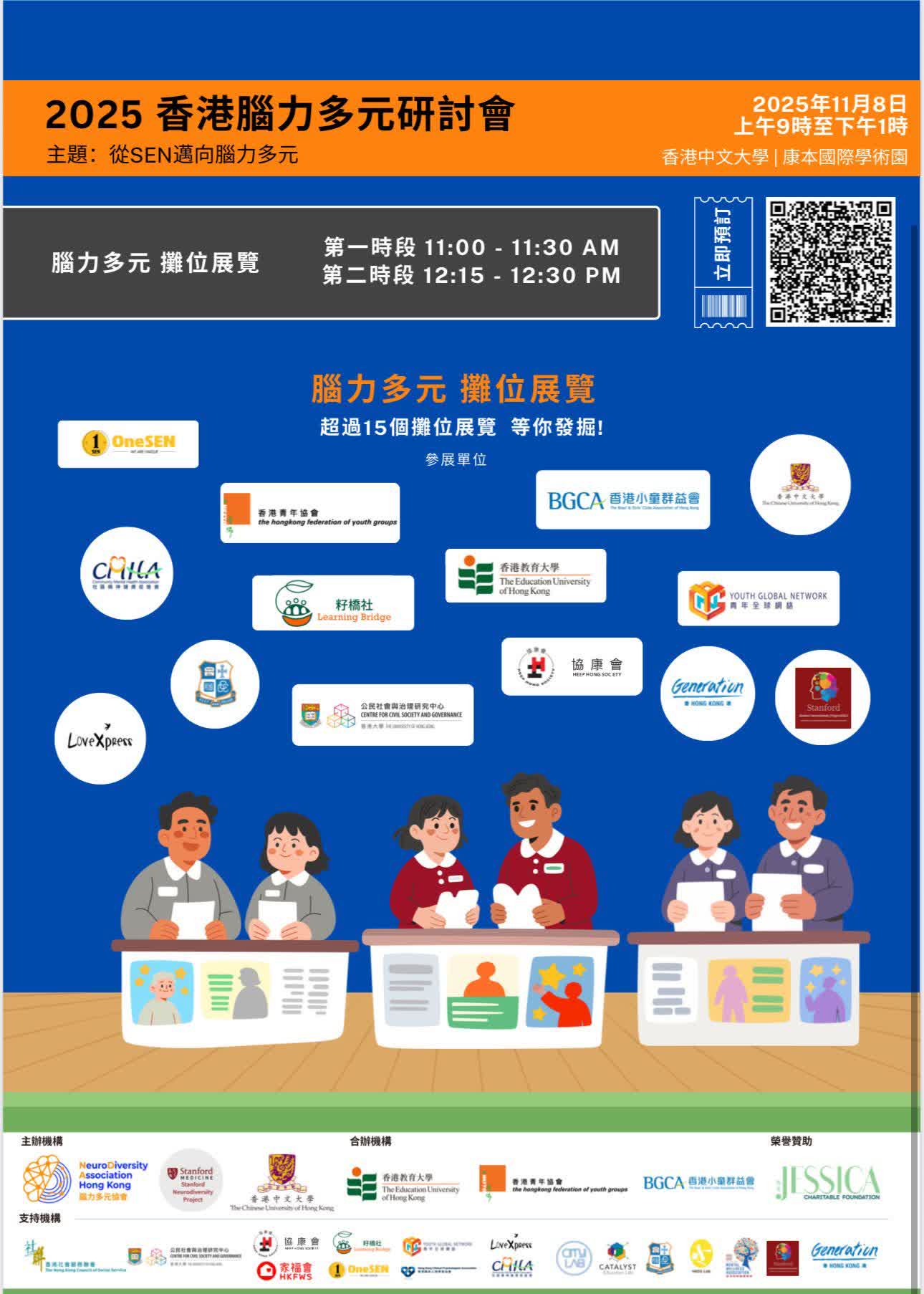 專題討論方面,則由史丹福大學、香港中文大學、香港教育大學及本地機構代表對談,探討如何跨界協作,推動由「補足本位」到「以強為本」的範式轉移。另設三大主題的分場研討同步進行,分別教育、就業,及臨床實踐角度,討論腦力多元評估過程及如何融入教育制度與職場發展。會場並設置近20個展位,展示以強為本的服務、研究與成功案例,涵蓋校本支援、家庭介入、青年就業配對、社企實踐與臨床評估創新工具等,呈現腦力多元在香港的跨界落地成效。