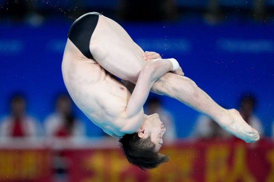 5日,第十五届全国运动会跳水比赛在广东奥体中心游泳跳水馆继续进行。男子个人全能决赛中,伤愈复出的奥运冠军练俊杰击败代表北京队出战的老将曹缘,为山东队拿下金牌;女子1米跳板决赛中,山西队的李亚杰稳居第一。