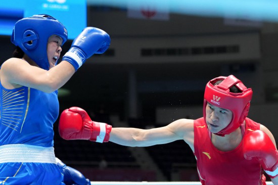 5日,在第十五届全国运动会拳击项目比赛中,巴黎奥运会冠军、内蒙古队李倩5:0击败上海队范悦,晋级女子75公斤级八强。