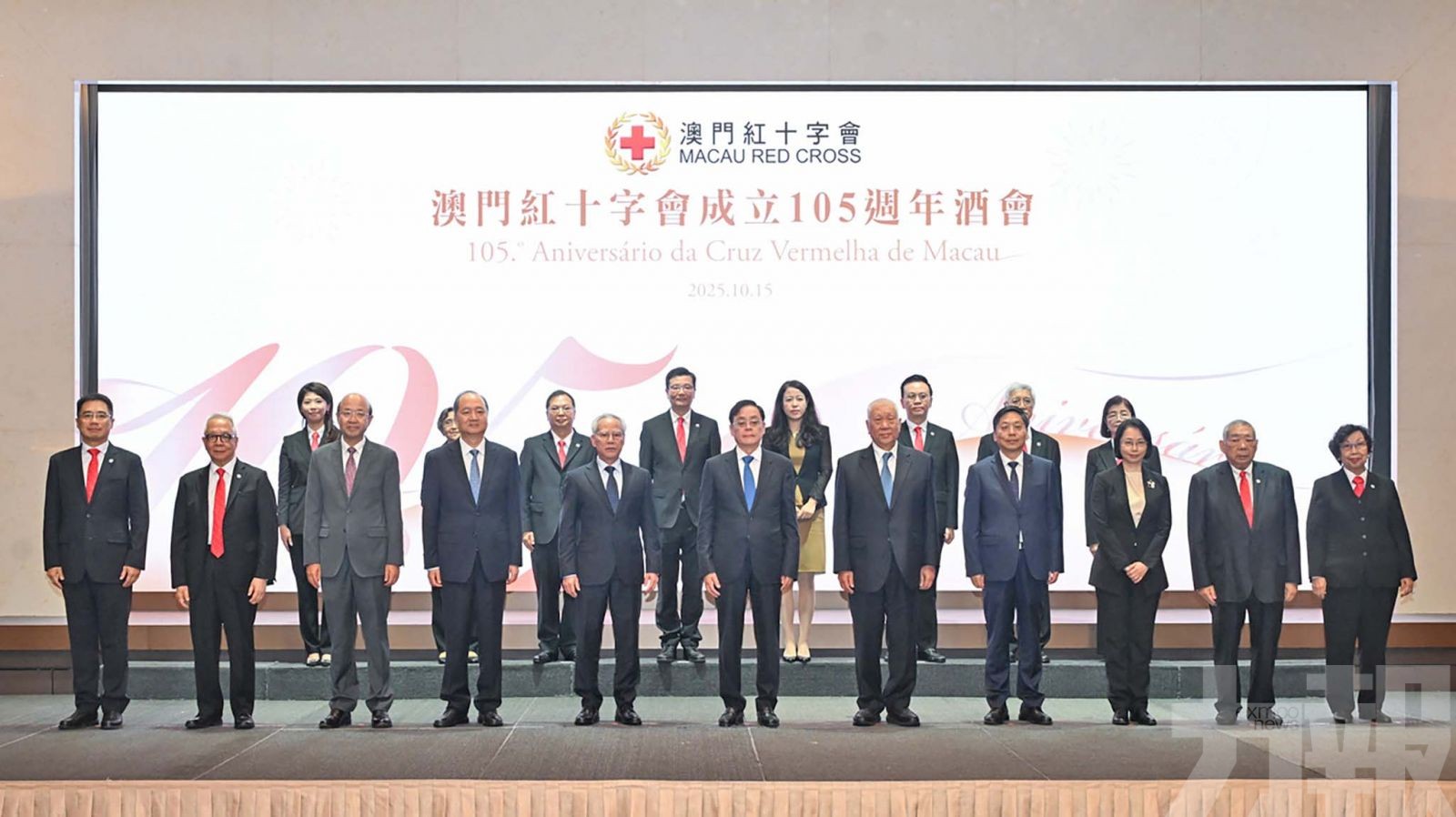 今年是澳門紅十字會成立105週年,上(10)月月15日在澳門旅遊塔舉辦了「慶祝澳門紅十字會成立105周年」酒會,澳門特區行政長官岑浩輝、全國人大常委會副委員長、中國紅十字會會長何維等出席酒會並發表賀辭。
